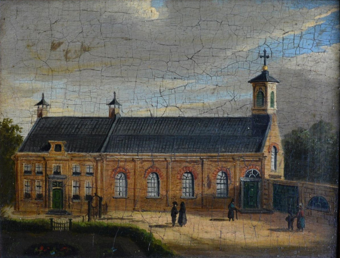 In de Reformatie tijd moesten de rooms-katholieken hun kerk bij de scheve toren verlaten en overdragen aan de protestanten. De rooms-katholieken bouwden een schuilkerk aan de Oostlaan, maar deze ging door een felle brand in 1773 in vlammen op. Alles: doopboeken, kerksieraden en gewaden gingen verloren.