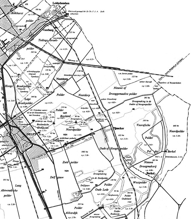 Daar een beschrijving van elke polder of droogmakerij op deze wijze een dermate ingewikkelde verhandeling zou worden, is slechts volstaan met een weergave van de grootste droogmaking. In het hierna volgende overzicht wordt in tabelvorm een opsomming gegeven van de polders in en rondom Pijnacker anno 1986 (zie ook plattegrond afbeelding no. 33).