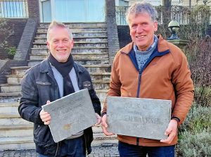 Twee fraaie stichtingstenen uit 1868 en 1895 van de in 1972 gesloopte boerderij en wagenschuur aan de Katwijkerlaan 83 zijn door makelaar Eric Flaton overhandigd aan Paul Hogervorst van het HGOP. De gevelstenen worden bewaard in het depot van het HGOP voor gebruik bij tentoonstellingen en zijn op afspraak te zien.