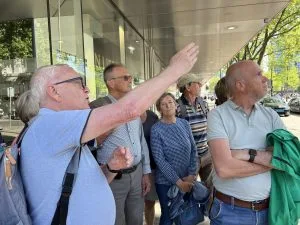 Op 10 mei 2025 gingen ruim 25 leden naar Rotterdam voor een rondwandeling, die aansloot bij de lezing van twee weken eerder over het bombardement en de wederopbouw van Rotterdam.